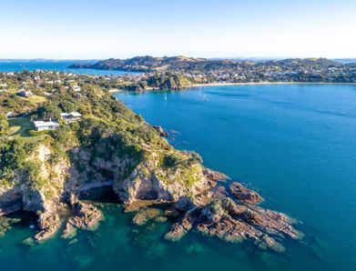 An intimate haven set amongst rocky outcrops and bush clad hills, Sandy Bay is just a short distance north of Oneroa village.