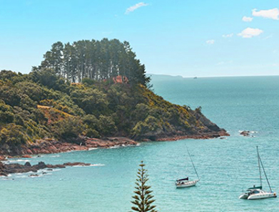 Situated just south of Matiatia, Church Bay boasts spectacular views across the Hauraki Gulf.