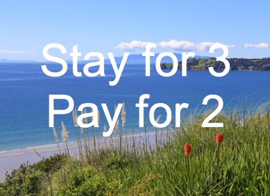 What's better than receiving a free nights stay when you travel to Waiheke? Make the most of a long weekend or well deserved mid week break.